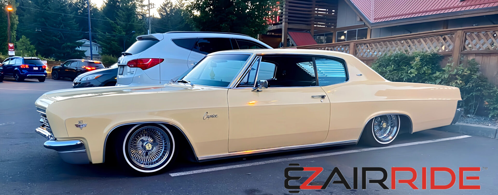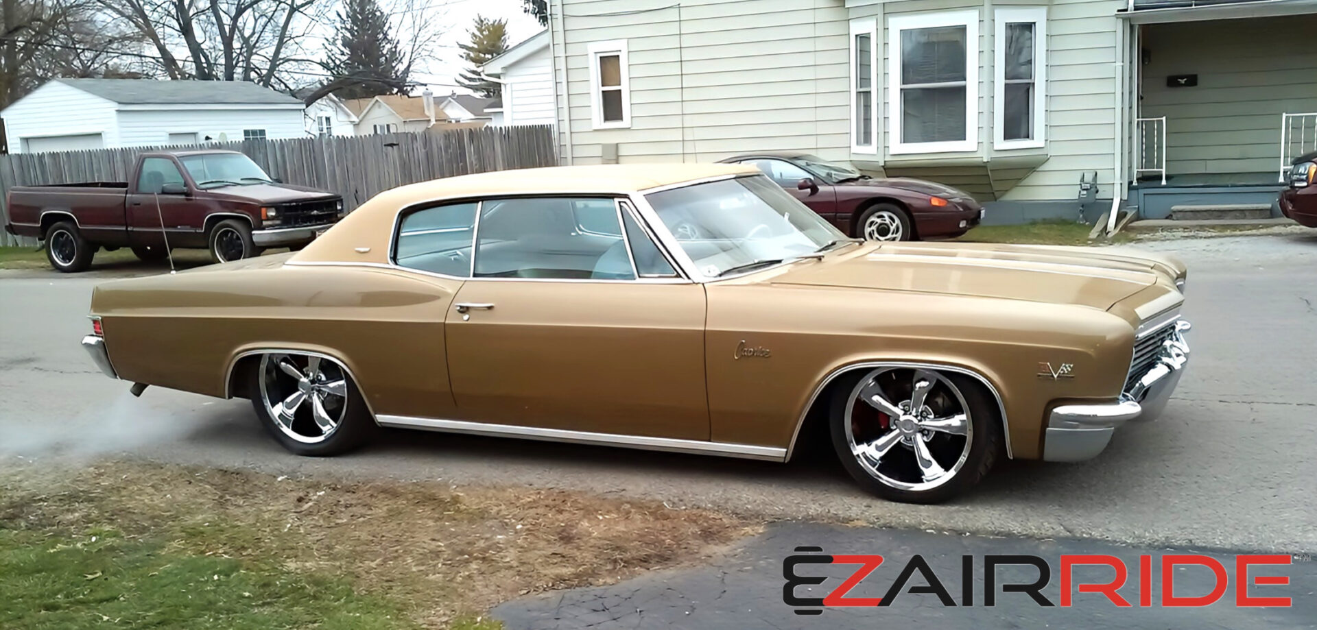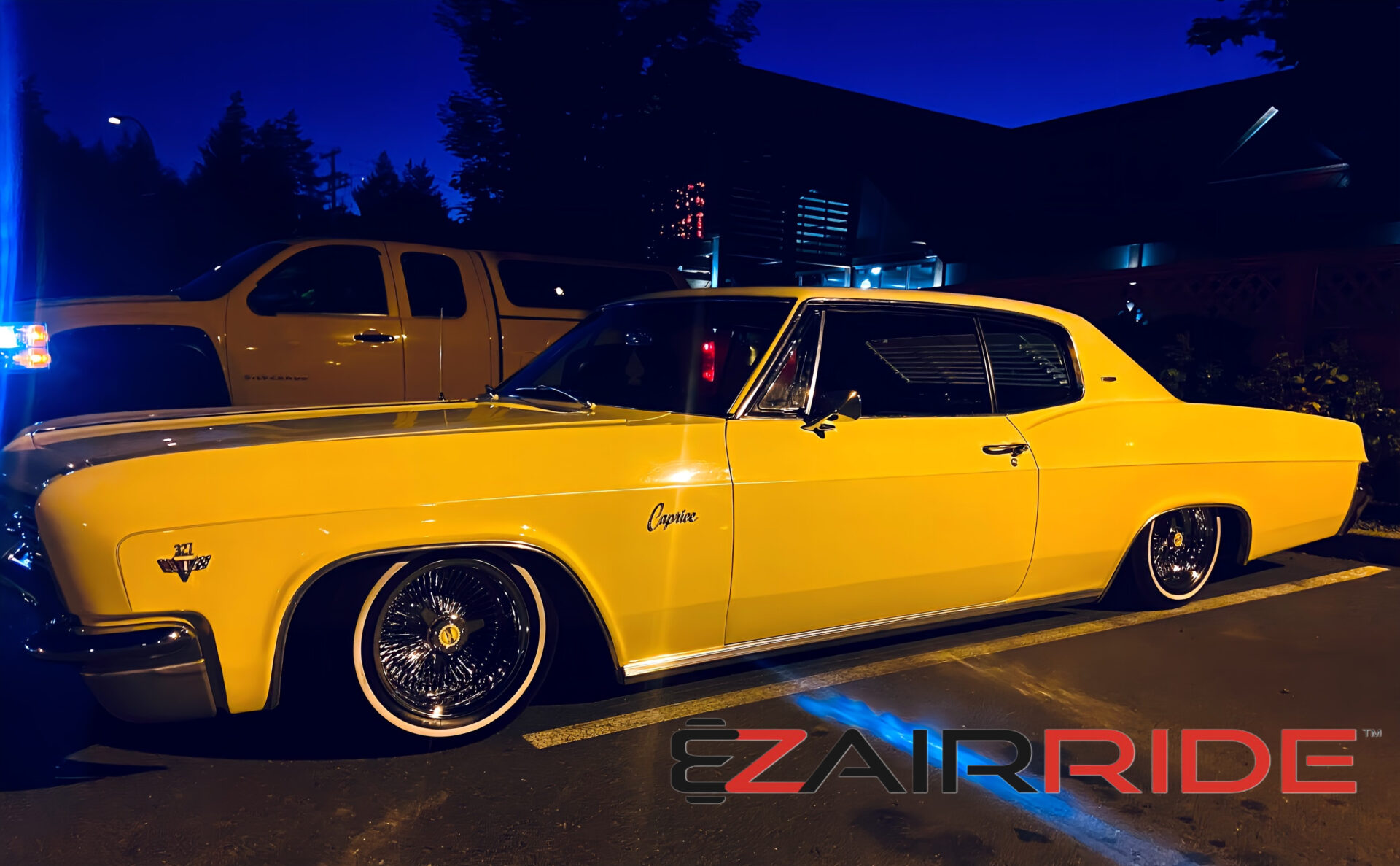 WHATS INCLUDED: Introducing our exclusive EZ AIRRIDE™ airbags & brackets, specially designed for all 1965-1970 Impala’s, Bel Airs, Biscayne’s, Caprice Classics and full size station wagons. Our 2500 series airbags offer more stroke than traditional 2500 series airbags, compressing down to 2.8 inches and extending to 10.5 inches, providing useable stroke of nearly 8 inches. This increased stroke results in lower pressure within the bags, ultimately delivering a more dynamic ride quality. Whether you’re planning an LS swap, have a 454 big block engine, or want to fit 20″ rims on your ride, our airbags can handle it all. Each 2500 series airbag has a max load rating of 2,096 lbs. @ 100 psi. Whether you’re laying it on the lawn at a car show, preventing your pipes or oil pan from scraping along the driveway, or scrubbing the tires on turns due to extra passenger weight, the Classic Plus Kit ensures optimal clearance and performance.