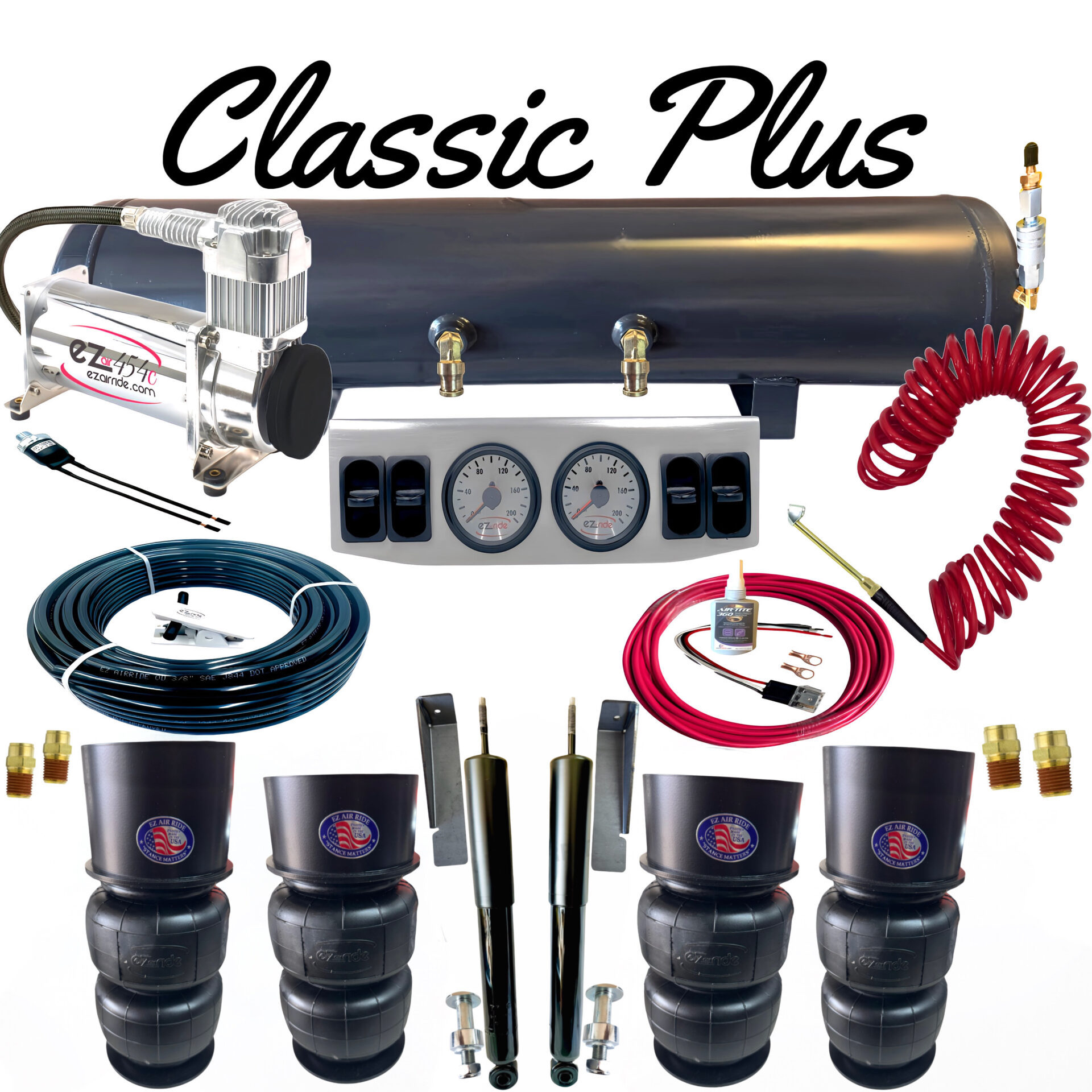 The Classic Plus Kit™ is a four-corner control system, often referred to as FBSS (front, back, side, side). While it may seem like a flashy addition meant for show, it’s important to understand that this system goes far beyond merely impressing onlookers with stoplight shenanigans, bouncing side to side. It serves a more practical purpose: The precise four-corner control enhances stability at each corner of your classic vehicle while minimizing body roll. Whether you’re accelerating up a freeway on-ramp at 60 mph, navigating painful potholes on a country road, or accommodating extra passenger weight, refined corner control is crucial for achieving optimal performance and combating the dreaded “Chevy Leans,”