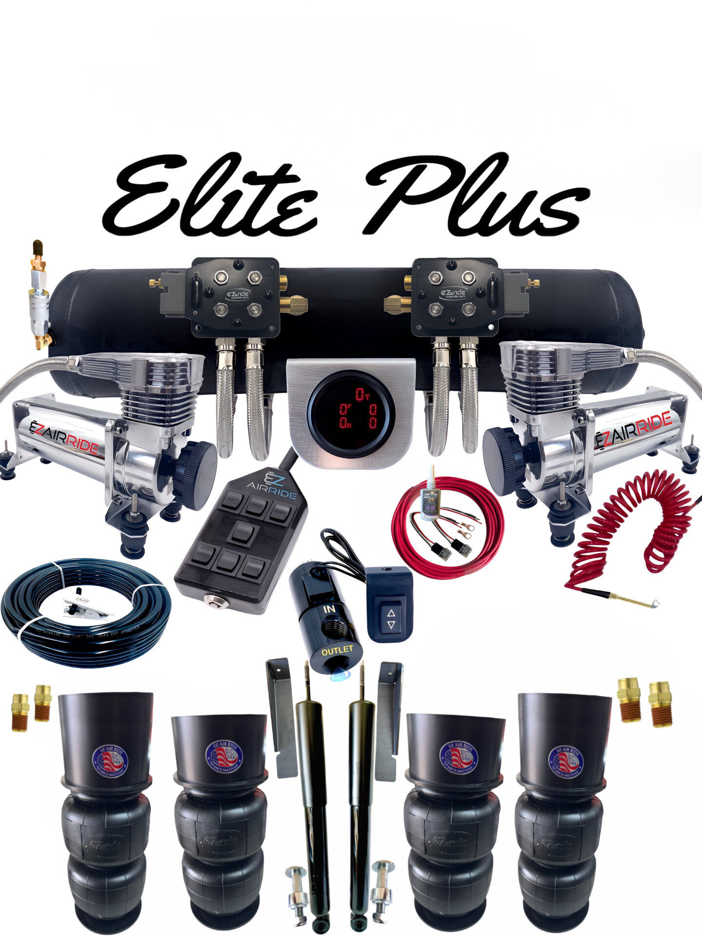 HERE’S A CLOSER LOOK AT THE  ELITE PLUS KIT:  Discover more below about the additional features and installation information that make it the perfect choice for your Biscayne. The Elite Kit distinguishes itself with many key features that set it apart as the superior choice for enhancing your suspension with an AIRRIDE system.