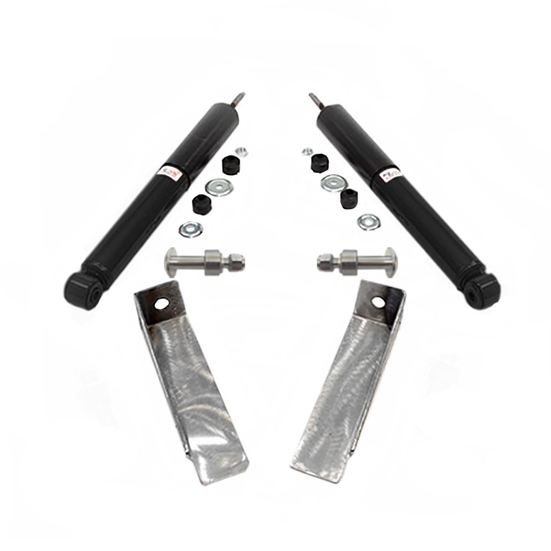 OUR FRONT SHOCK RELOCATION KIT: Includes both shock absorbers, upper shock towers, lower stainless bolts, and all necessary hardware for relocating the front shocks to the outside of the airbag.