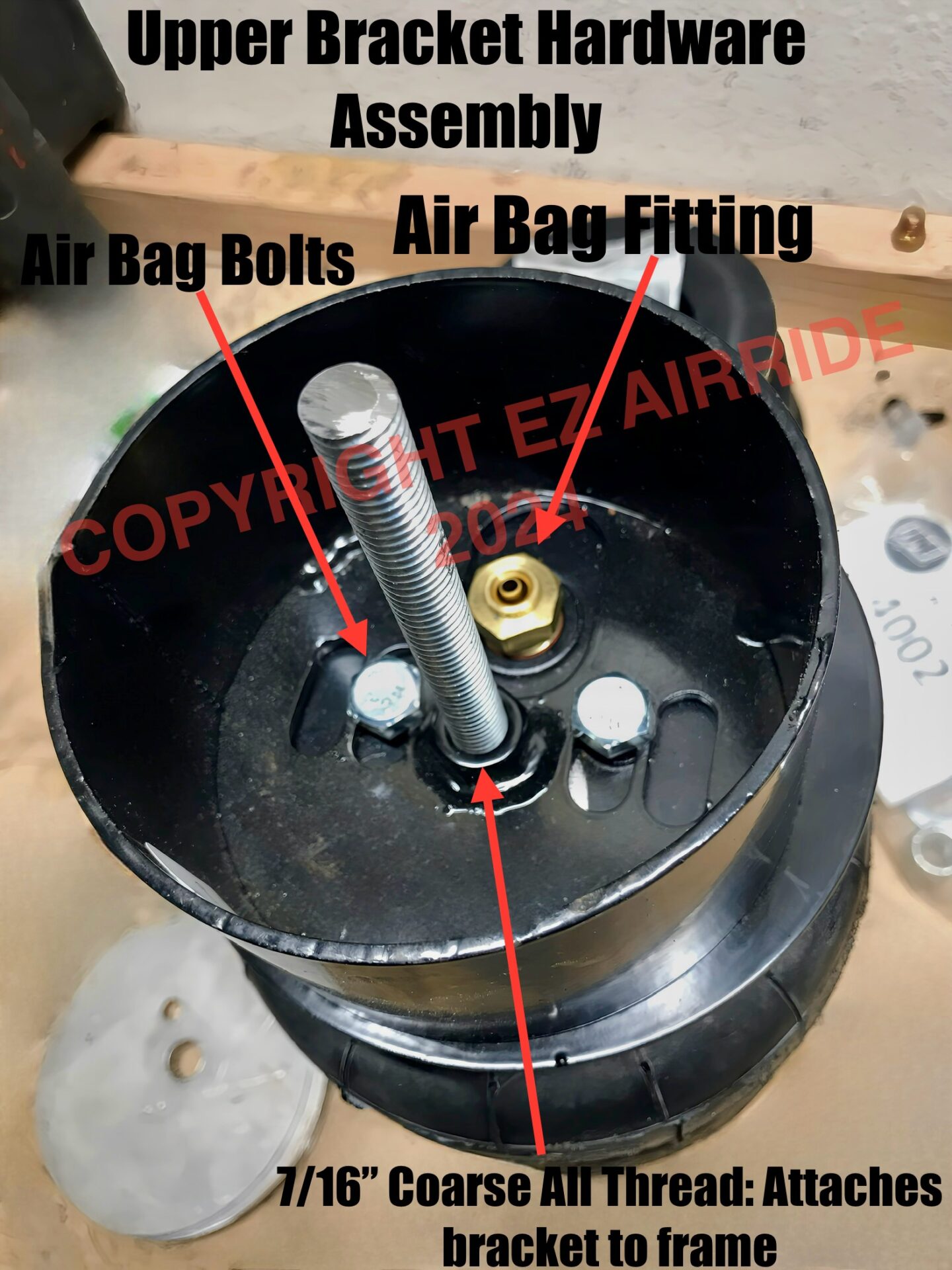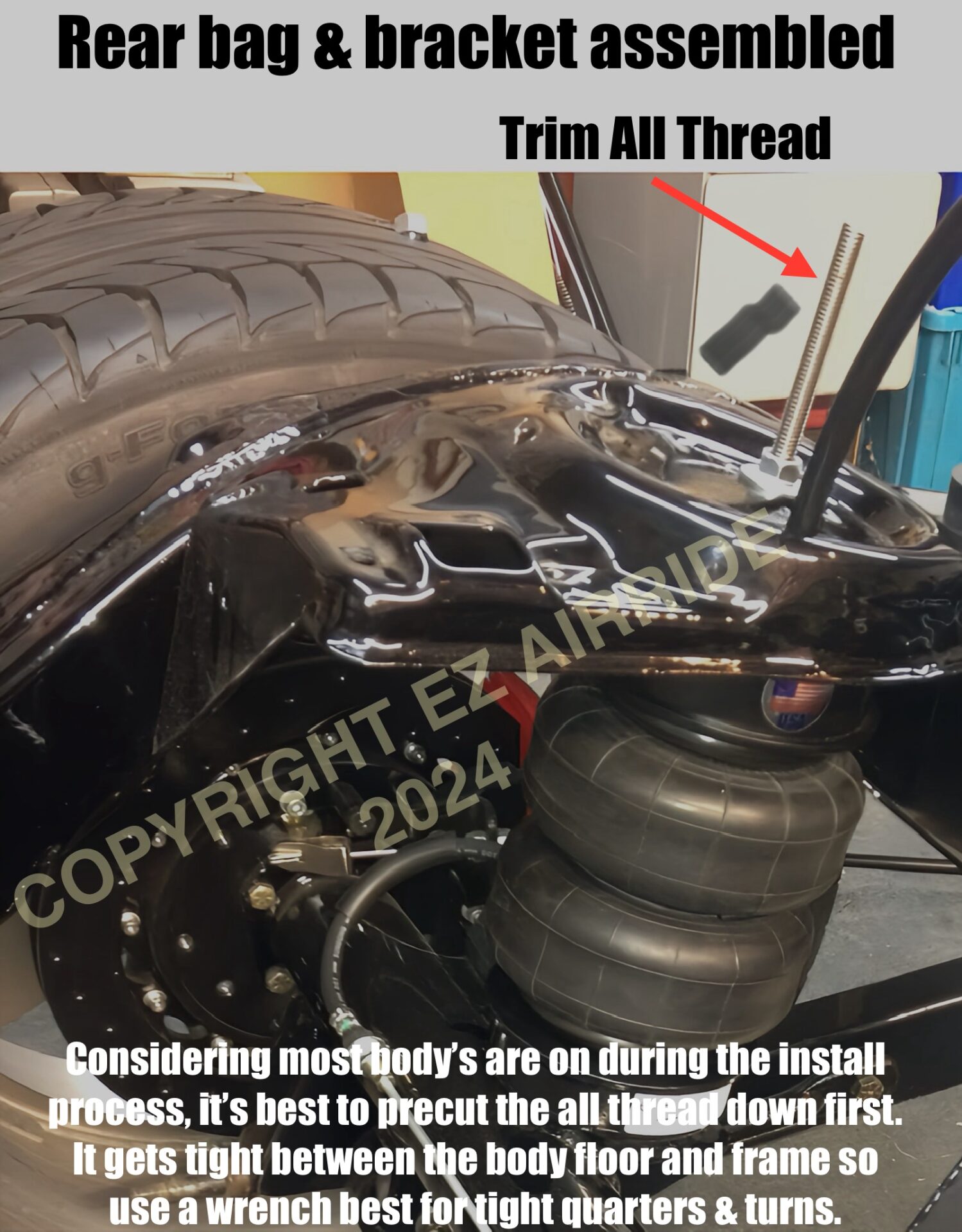 - (4) 3/8″ x 3/8″ NPT Air bag fittings: (2) Straights for the front (2) Straights for the rear