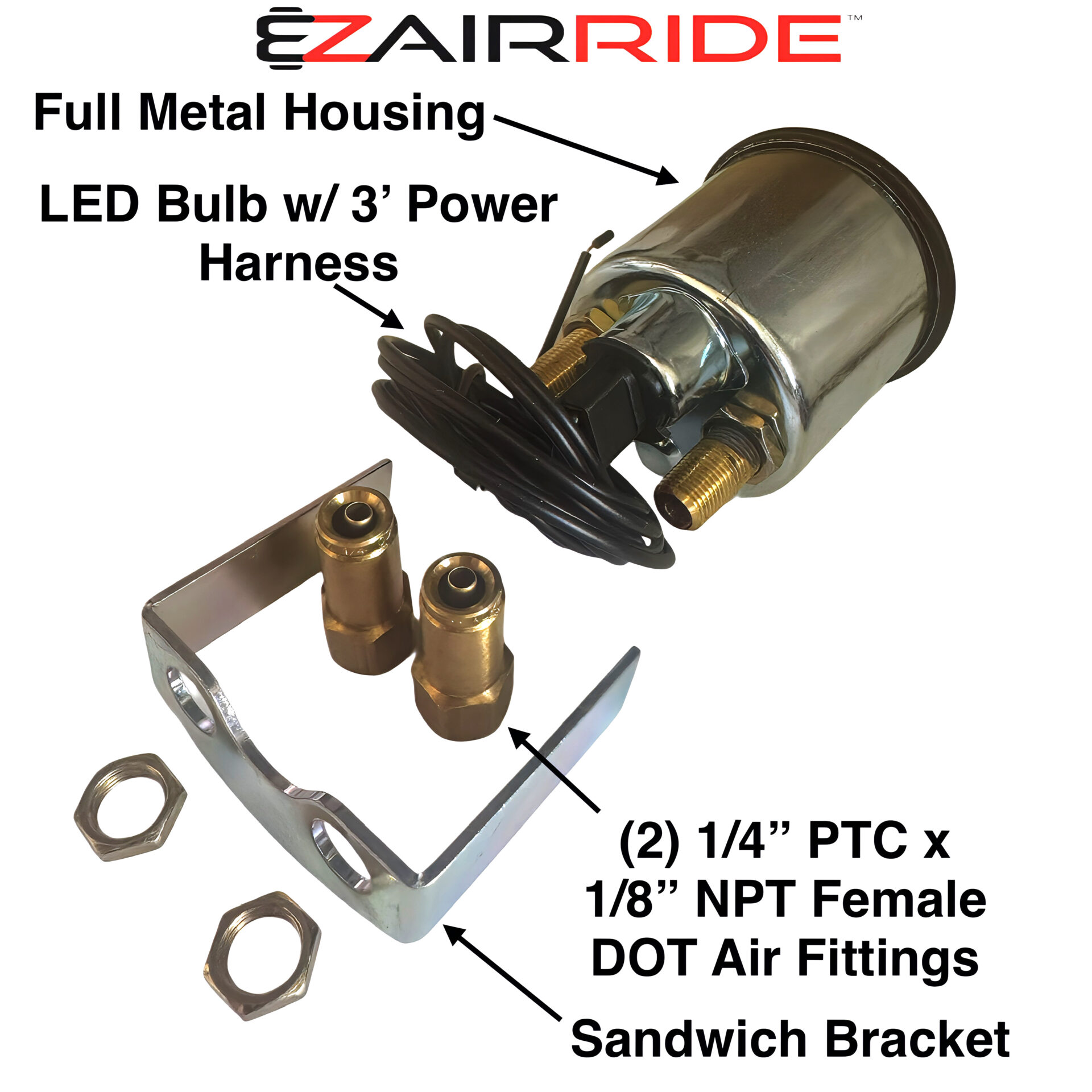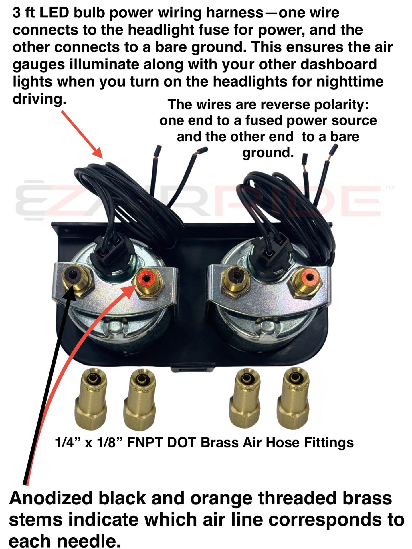 - (4) 1/4″ x 1/8″ DOT Push-to-Connect Gauge Fittings