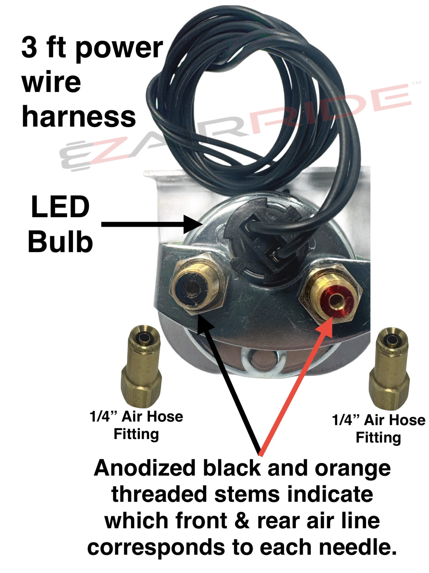 Mechanical Reliability: This system uses traditional 1/4″ airline hose that needs to be plumbed from the back of the gauge to the manifolds—typically located in the trunk of a car or at the back of a truck chassis. While this takes a bit more effort to install, it keeps your build “old school” for that unmatched mechanical reliability and real-time needle response.