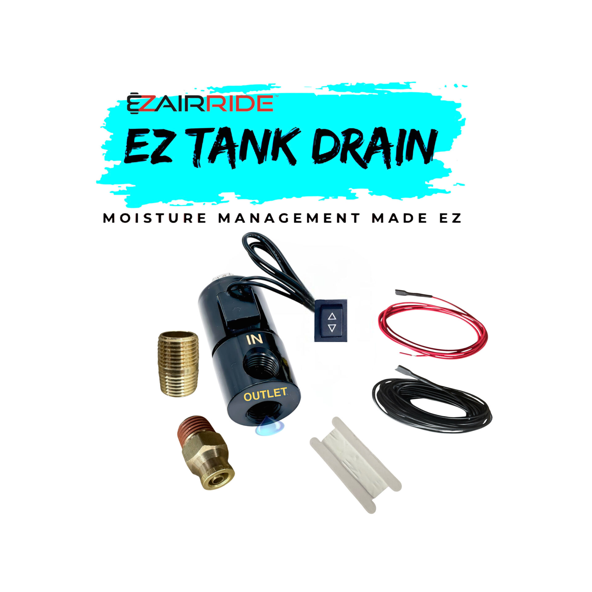 The EZ High-Flow Tank Valve: Is the muscle behind your maintenance, featuring a 1/4″ NPT thread designed to fit directly into the bottom port of our EZ 6-gallon tank or any standard air reservoir. Rated for 250 PSI, this valve is engineered to blast out moisture and sediment in a split second with the touch of a finger. This ensures your entire air system – from your manifolds and electric sensors to your gauges – remain protected from the internal moisture and debris that can compromise performance and longevity. We’ve included a 1/4″ close nipple for a secure, flush mount to your tank, along with a DOT-approved Push-to-Connect (PTC) exit fitting to easily route moisture through the trunk floor with a short length of 1/4″ air hose for that professional finish.