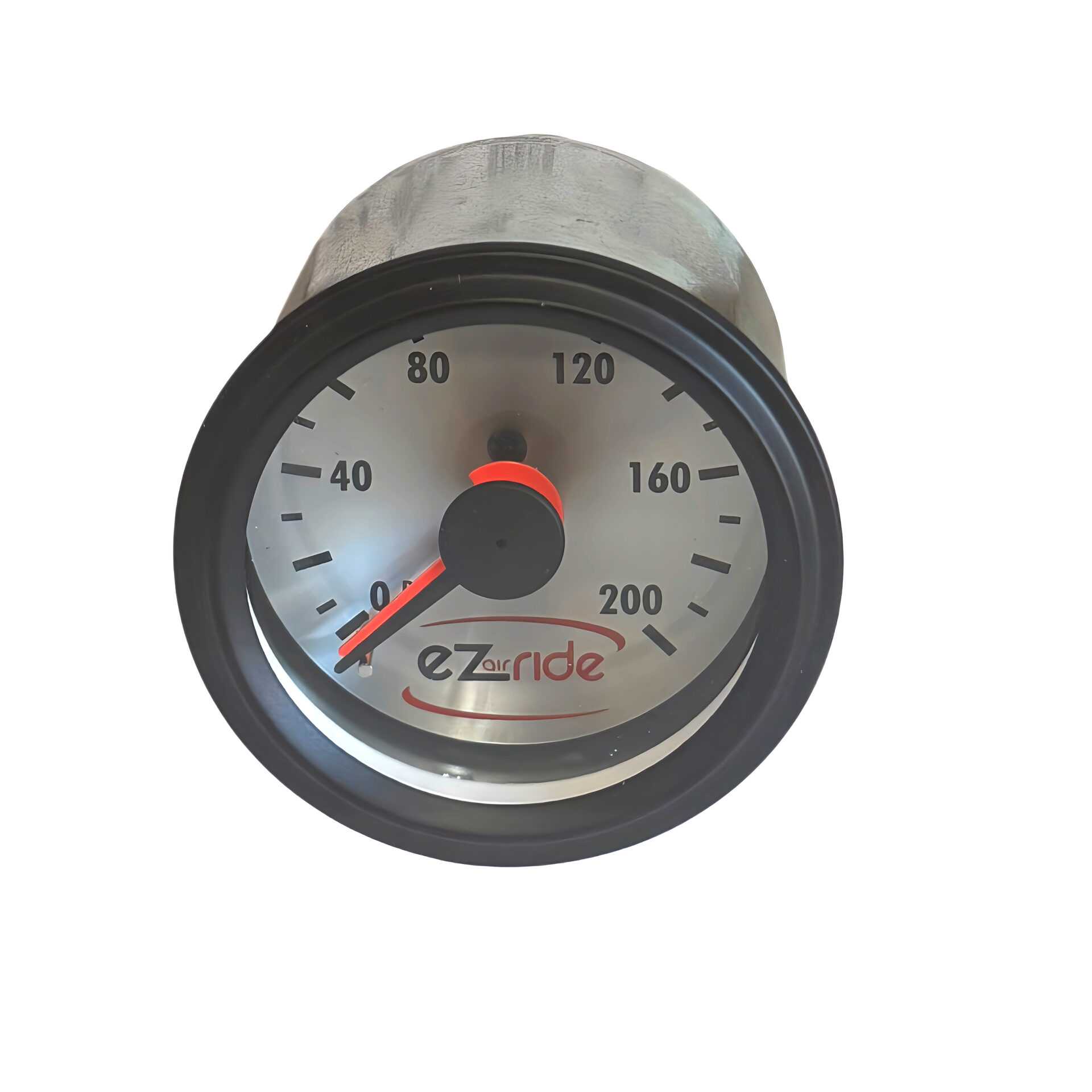 - This 2Â 1/16″ (52mm) dual needle air pressure gauge has a range of 0-200 psi. This sleek gauge features a glass face with a brushed aluminum dial, a black bezel, all encased in a durable metal housing.